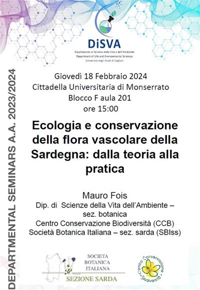 Il Dipartimento di Scienze della Vita e dell’Ambiente dell'Università degli Studi di Cagliari, in collaborazione con il Centro Conservazione Biodiversità dell'Università di Cagliari e la sezione sarda della Società Botanica Italiana, organizzano per il pomeriggio del 18 GENNAIO un Seminario dal titolo “Ecologia e conservazione della flora vascolare della Sardegna: dalla teoria alla pratica”.